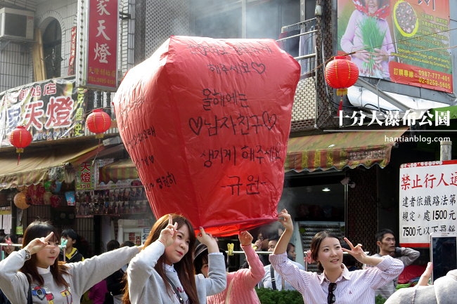 火車來之前,大家都在鐵道邊寫天燈放天燈