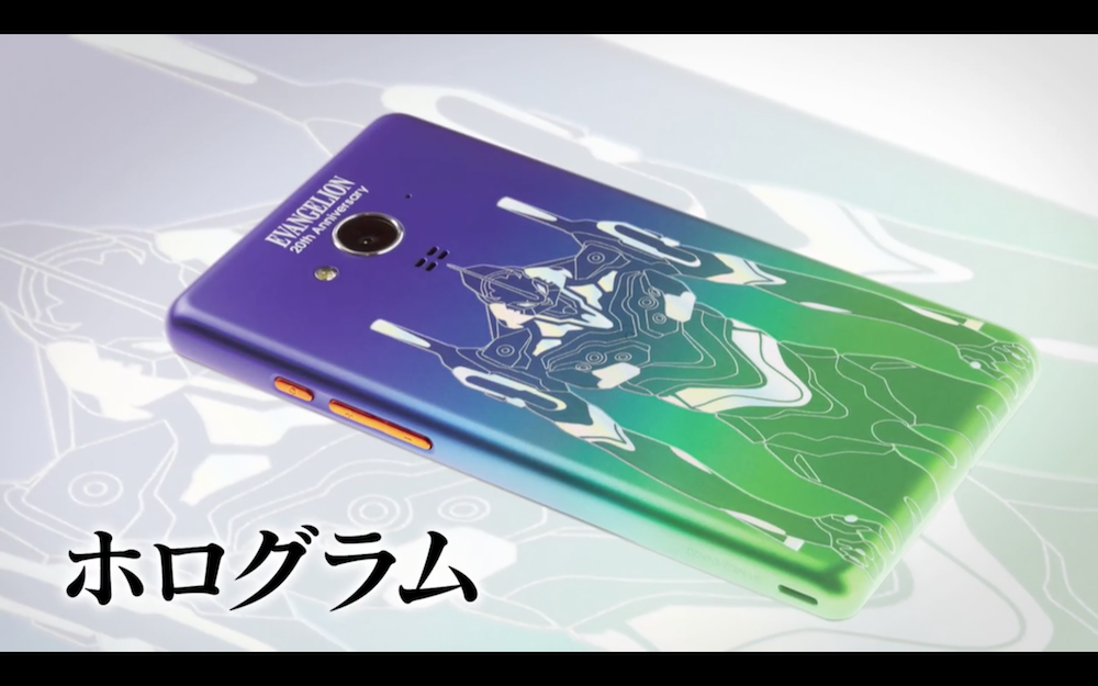 SH-M02-EVA20 最大的特色就是背蓋大量使用初號機的代表色紫色,下方還有初號機半身樣式,讓初號機元素大量使用在手機上,音量鍵的部分也特別使用了橘色,以及鏡頭上方還有 Evangelion 20th Anniversary 字樣,證明這款 SH-M02-EVA20 是 Sharp 專為 EVA 20 週年所推出的紀念機種。