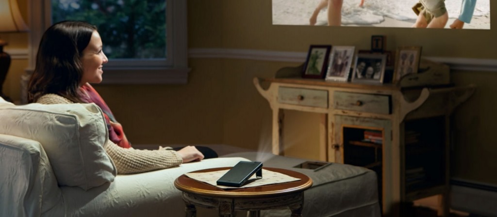 機身僅有手機般大小的行動微型投影機能近距離投射影像,最大可達 120 吋畫面;透過Wi-Fi的鏡射功能可輕鬆連接智慧型手機、平版電腦或是桌上型電腦,無論是在露營旅程播放星空電影院、搭配PS4遊戲器或是商務簡報使用,都能隨處享受放大影像的便利與樂趣,連接耳機或喇叭更可創造令人驚喜的視聽體驗,讓高品質的影像隨身帶著走!