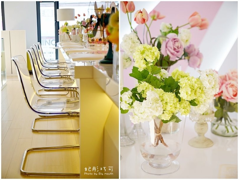 ▼粉紅色的法式吧檯搭配夢幻的桌花,一整個好浪漫啊!不知道為何讓大口聯想到婚禮的感覺捏!