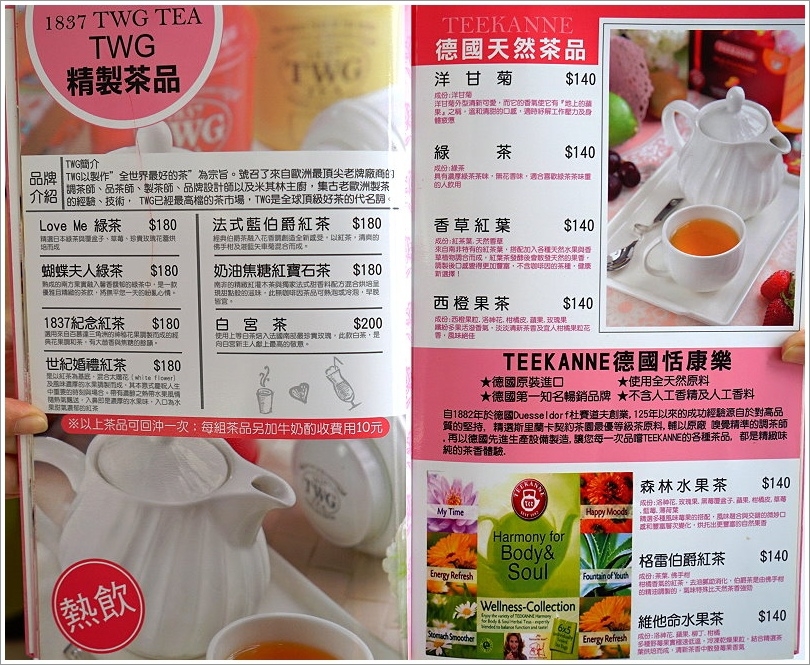 ▼另外還有TWG TEA及德國天然茶品可供選擇,讓人喝得美味又安心!