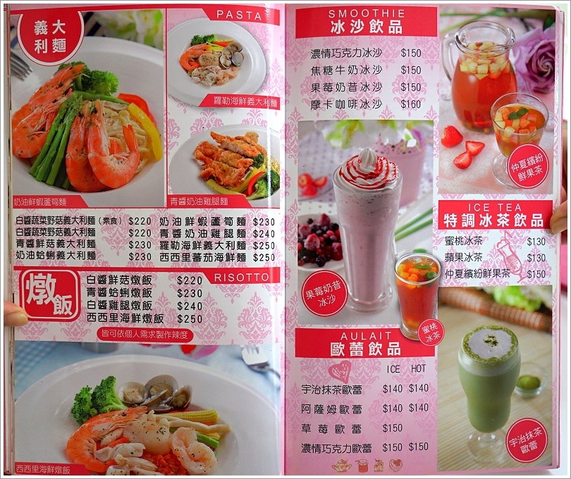 ▼菜單,話說也設計的太可愛了吧!其實少女不但有公主夢,身體裡還隱藏著一個孩子,所以用充滿童趣的感覺也滿適合的!