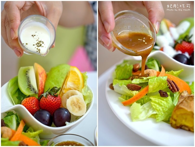 ▼季節水果佐優格,裡頭有各式各樣的水果,且每種水果新鮮又香甜,搭配優格醬頗為健康美味!他們的有機蔬菜搭配和風醬,吃起來微微酸香,讓人越吃越開胃!