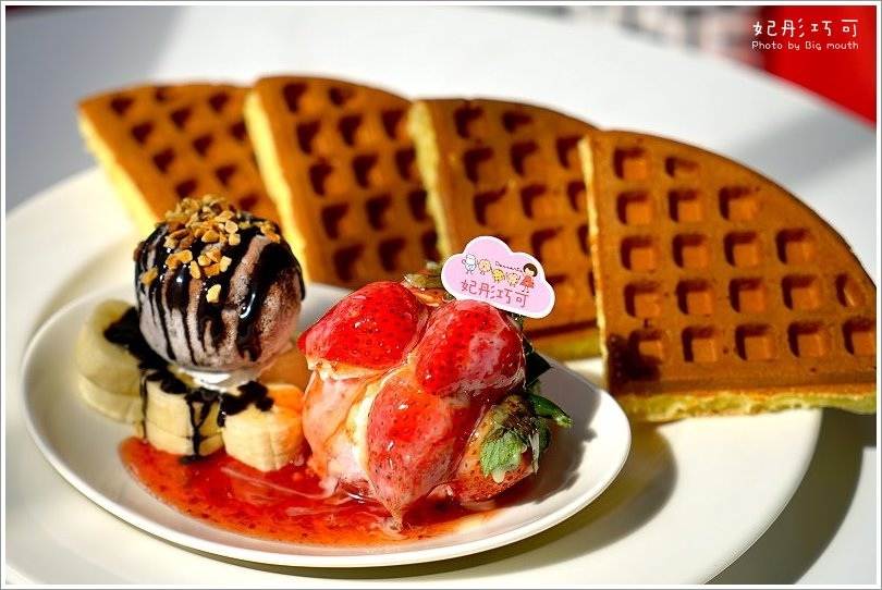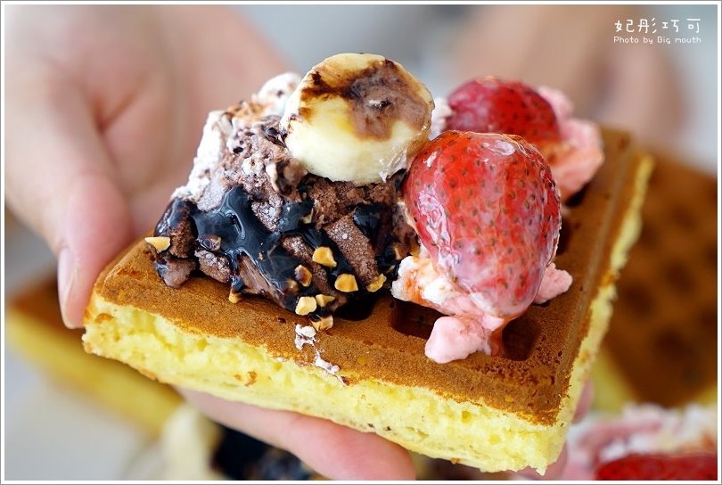 ▼搭配冰淇淋及水果吃起來,微微酸甜帶點果香,讓香酥的鬆餅更加香甜可口啦!