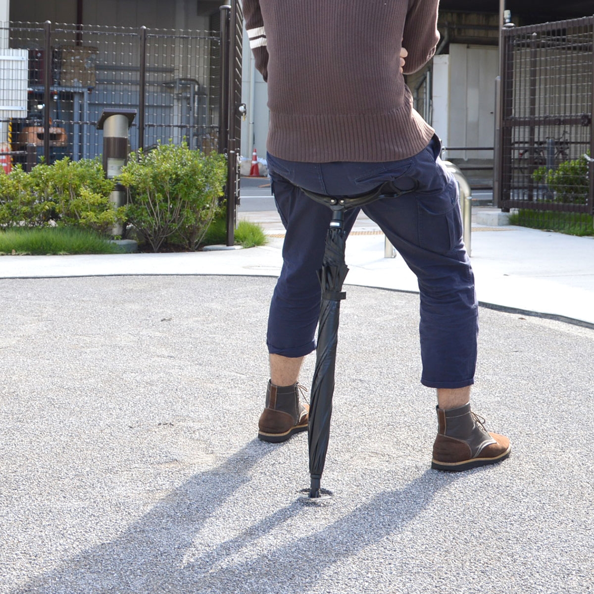 這幾年常到日本旅行,從點到點的移動距離遠,光是在 JR、地鐵、私鐵的跨線轉乘就要走很久,每次都很佩服日本上班族的腳力,或許是因此,他們就發明了這個玩意,由彈弓呈“丫”字形結構的靈感,設計一枝可以當椅子座的雨傘,趕路累了時可以小歇一下。
