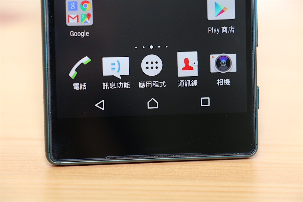 自 XPERIA Z 推出後,歷代 XPERIA Z 系列及其他 XPERIA 系列手機全面使用虛擬按鍵,而虛擬按鍵的好處就是未來更新時,若有改變按鍵排列或是圖樣,比較方便原廠進行重新設計。而 Sony XPERIA Z5 使用了全平衡設計,除了機身全面平整化之外,連上下喇叭也都是對齊的,充分發揮全平衡的設計理念。