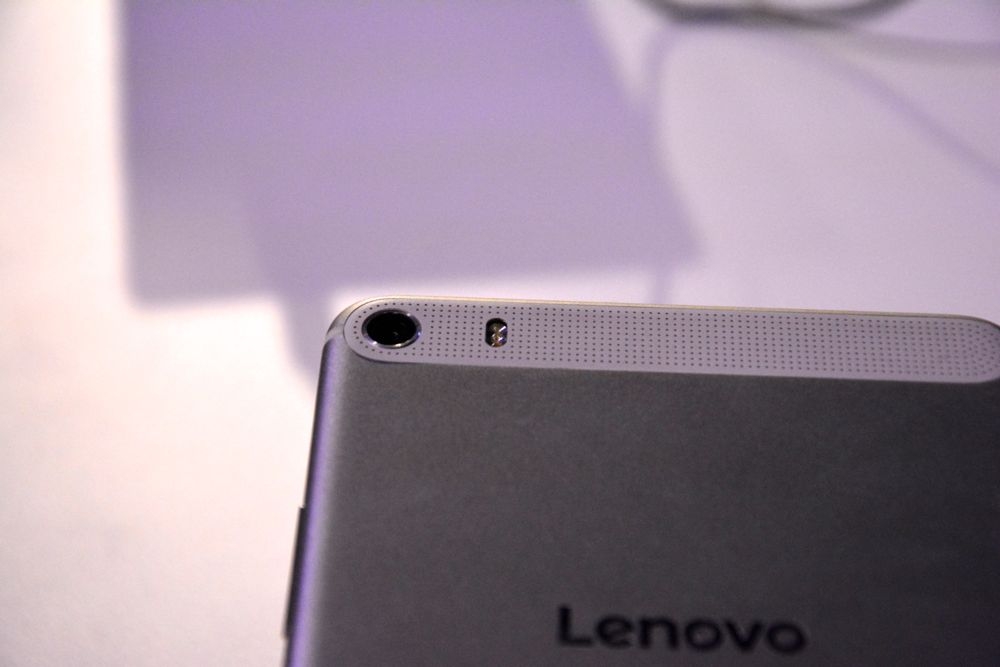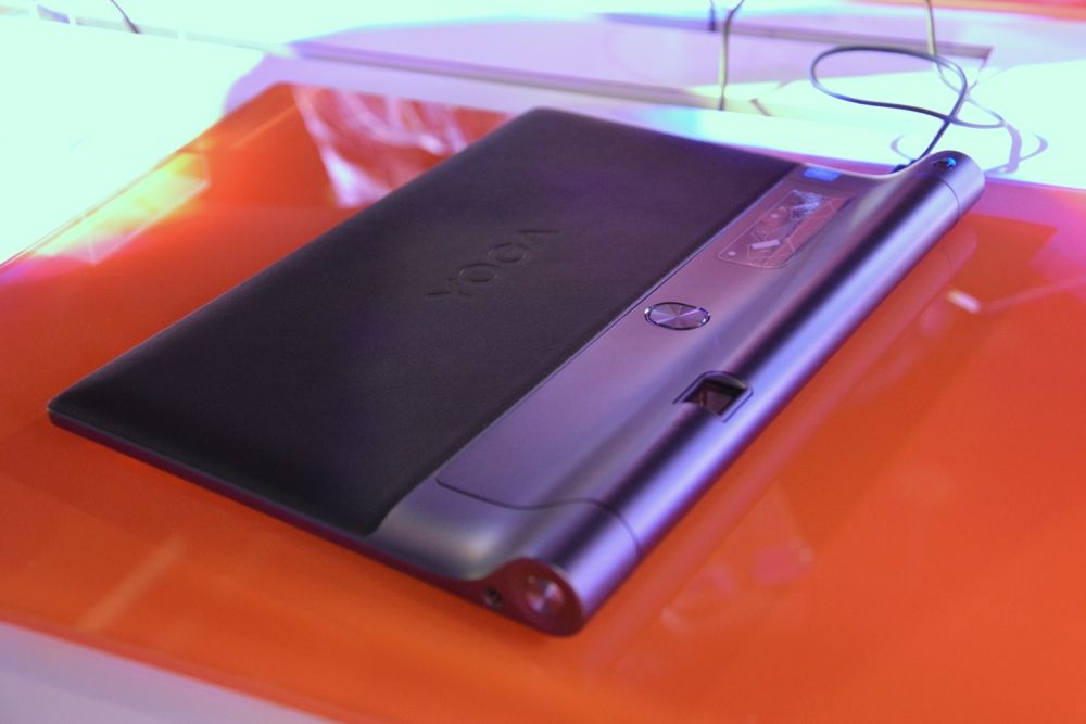 接著是有投影機特色的 Yoga Tab 3 pro,使用 Intel Atom 處理器,10.1 吋 IPS 螢幕,2GB RAM/32GB ROM,1300 萬畫素相機與 10200mAh 電池容量。
