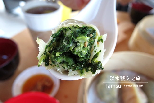 套餐內的花素蒸餃,是用台灣的青江菜做的