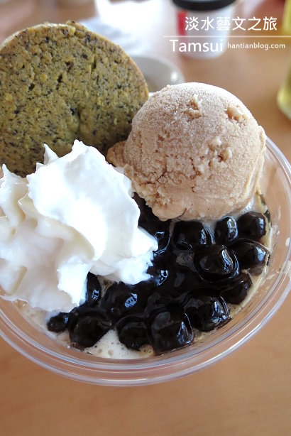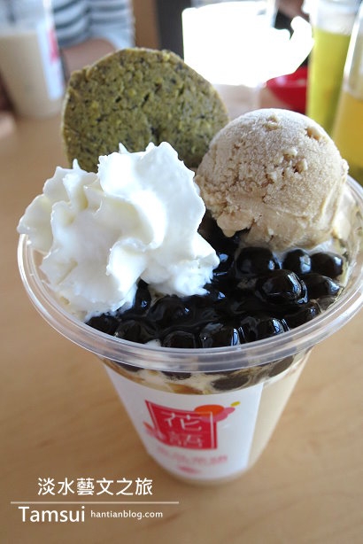 上面的珍珠是花語餐廳自己煮的,加入蜂蜜和黑糖一起熬煮
