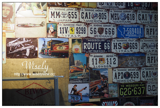 後方座位最大亮點便是牆上那外國車牌所組合的牆面,讓人感覺濃郁的異國風。