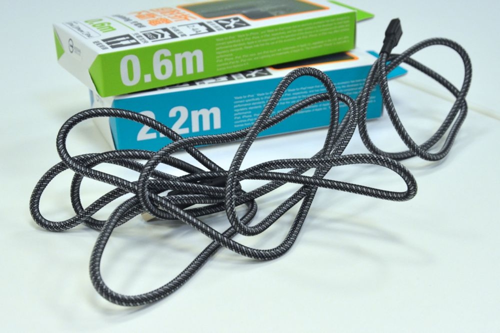 這個傳輸線除了有 0.6m 與 2.2m 兩種長度選擇,最特別的地方就是那特殊可以隨意變形扭轉的設計。
