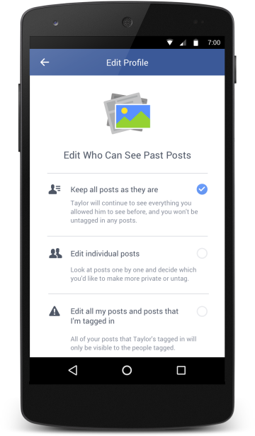 終於,這項功能也出來了!以前好的時候總是有著許多合照出遊或是曬恩愛的貼文,分手後這些照片文章怎麼辦?好吧,那如果以後有各自有了新戀情,那些照片怎麼辦!!!?!?!!? 所幸這點 Facebook 也想到了! 這項功能就是讓你可以選擇你們兩個曾經有 tag 過對方的文章或是照片來作權限的編輯,看是要拿掉 tag 還是保留原狀。當然,如果是團體大合照的就只能自己手動處理囉!