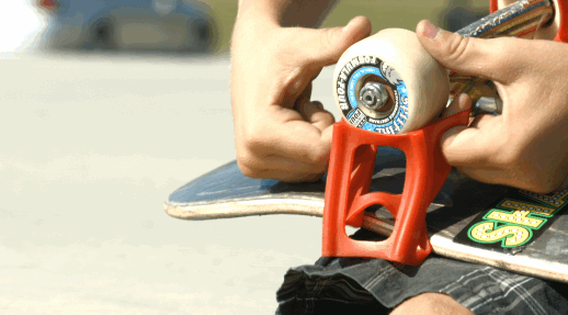 滑板練習器 2.0,只要將這個四方形的塑膠套套上輪胎,就可以在原地好好的練習,玩家不用擔心腳上的滑板因為不受控制滑到十萬八千里的地方,當你要追回來繼續練習的時候,你的雙腳就跳不起來了!