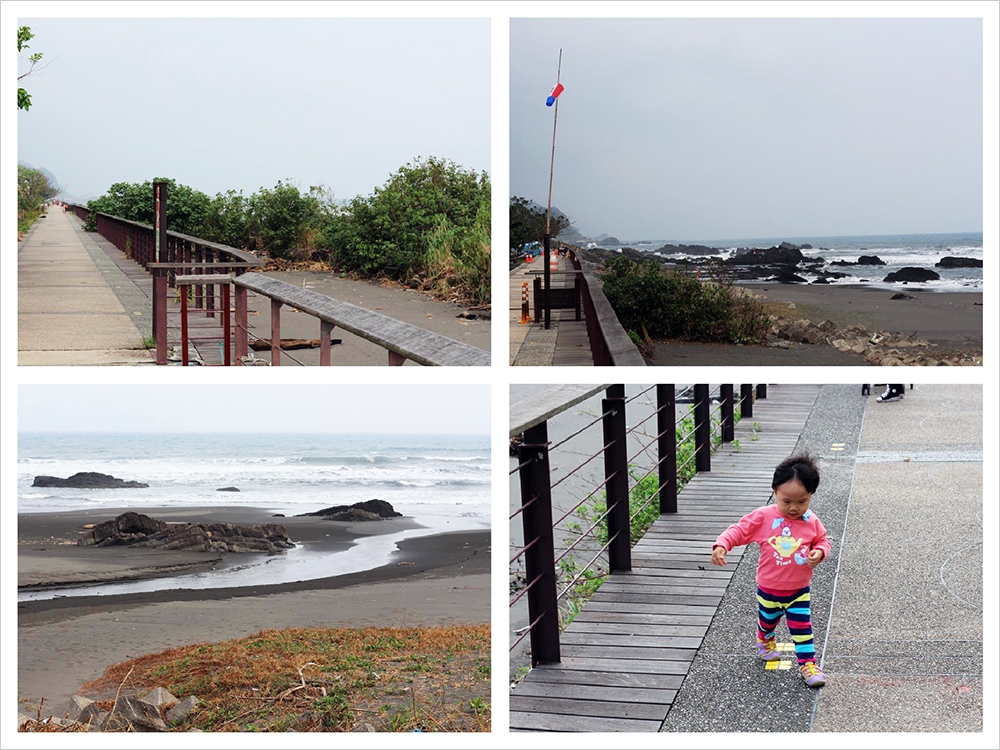 後來我們又在旁邊規劃的自行車步道散步,面向大海往左邊走,就是他們俗稱的「民宿一條街」,如果往右邊走就是「衝浪一條街」,因為我們對藝人王仁甫的民宿滿感興趣的(就在旁邊走路兩分鐘左右而已),於是散步過去看看囉~這邊如果天氣好,景色應該超棒的!