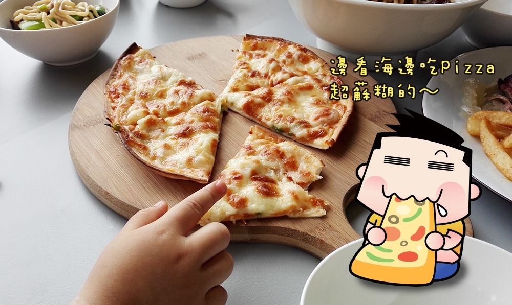 另外是連小寶貝也很愛的海鮮薄片 Pizza,一家人點個這個分著吃真的是剛好,邊看海邊吃 Pizza 真的是很難得的體驗。