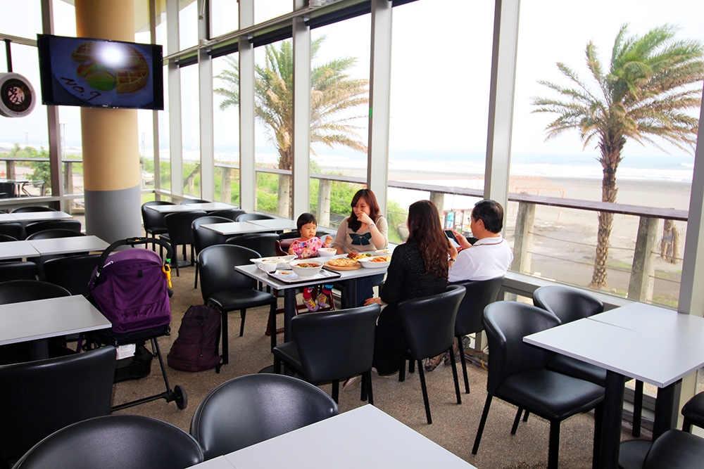 恰爾斯覺得這裡最棒的是靠近海邊,有這樣挑高的玻璃帷幕空間,讓超大的海景直接灑進來啦!看了心胸都開闊了起來,天氣好的話還可以一邊遠眺龜山島一邊享受著下午茶和餐點!