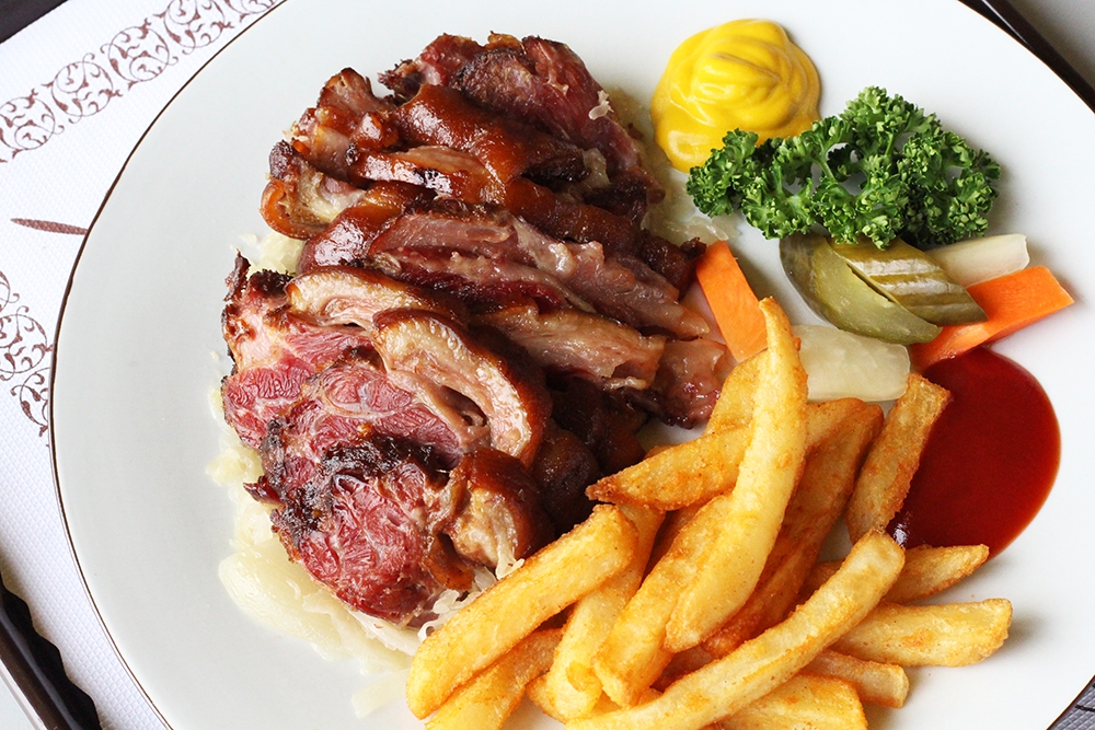 接著是厲害的德國豬腳,恰爾斯覺得還滿適合搭他們家的麥田啤酒。