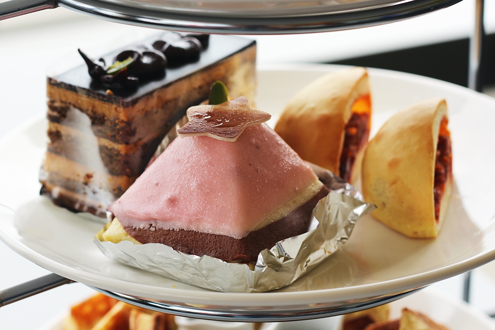 中間是任選兩塊蛋糕搭配他們家最厲害的「雪影叉燒包」
