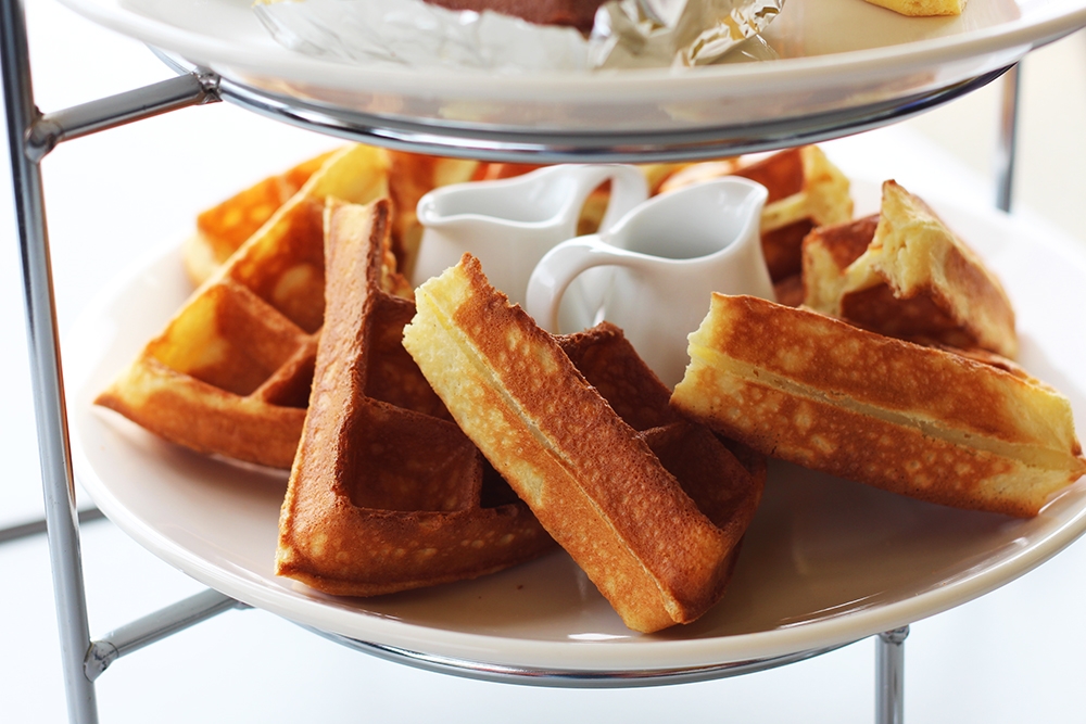 最下層是巧克力、蜂蜜搭鬆餅,可以淋上最喜歡的醬來使用,下午茶就是要這樣吃啊!