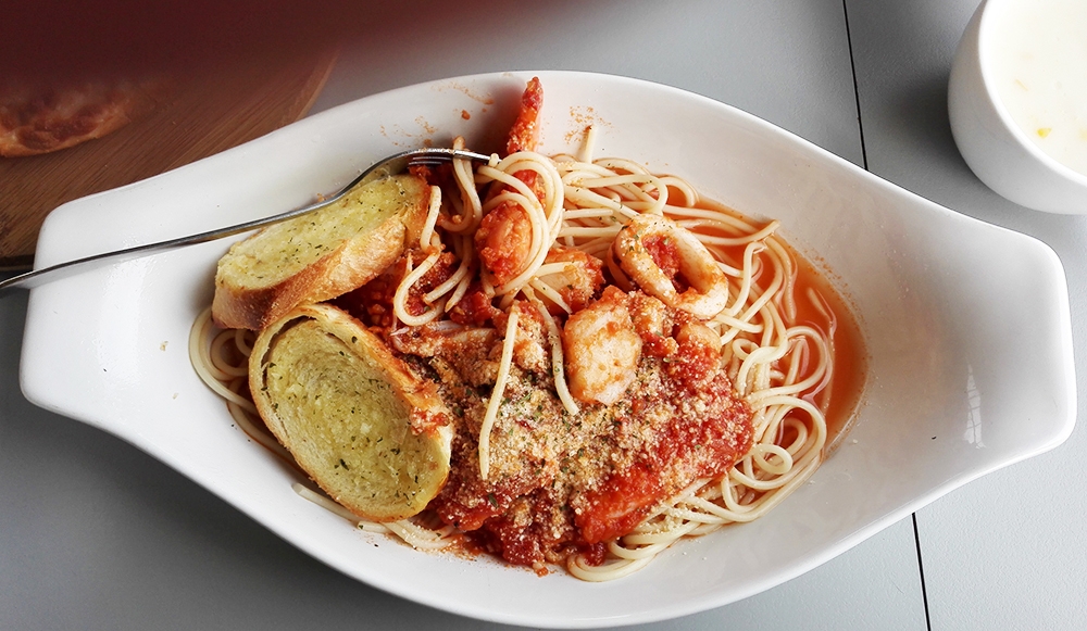 此外裡面的蝦子也是十分 Q 彈,搭配醬汁和滑順的義大利麵,讓我們吃得很開心,而且份量十足呢!