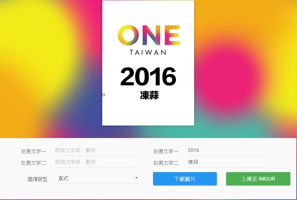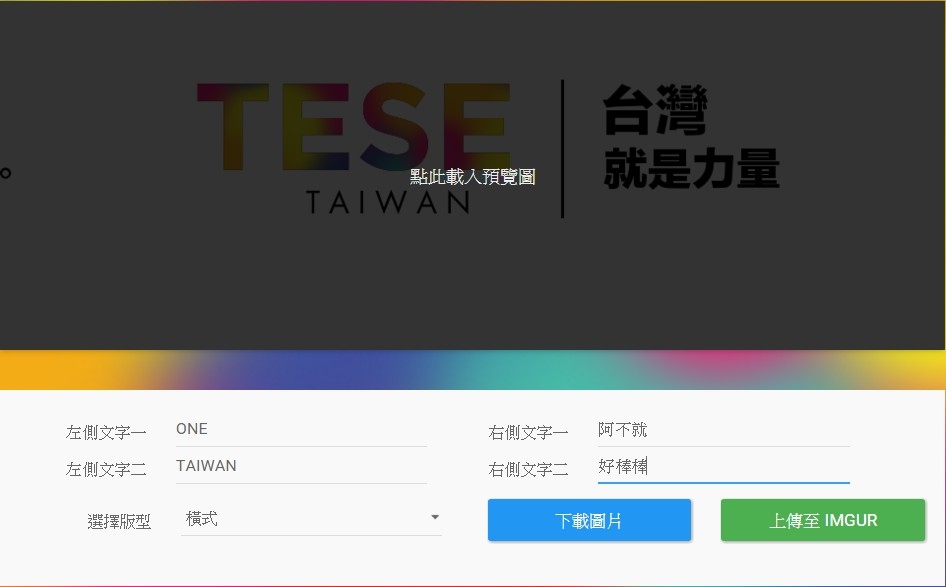 按文字類型各於首頁左右下方輸入想顯示的標語,版型直或橫示皆可,輸入完畢再載入預覽圖。