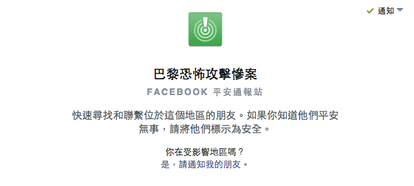 [巴黎恐怖攻擊慘案 FACEBOOK 平安通報站]