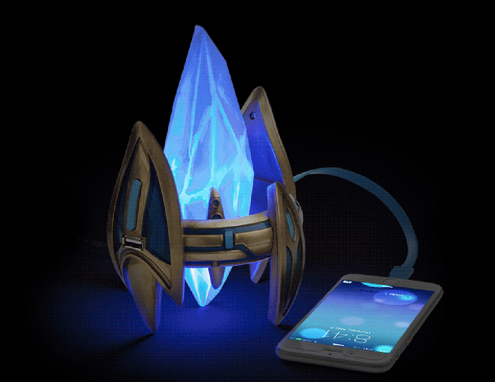 歐美著名的宅宅主題網站「ThinkGeek」推出了一款星海爭霸 2 中,神族最重要的基礎單位「水晶塔」造型的 USB 充電座。玩過星海爭霸 2 的朋友一定都知道,神族的建築物一定都要在水晶塔的補給範圍內才能躍傳,若水晶塔被破壞,附近的建築物將無法運作。