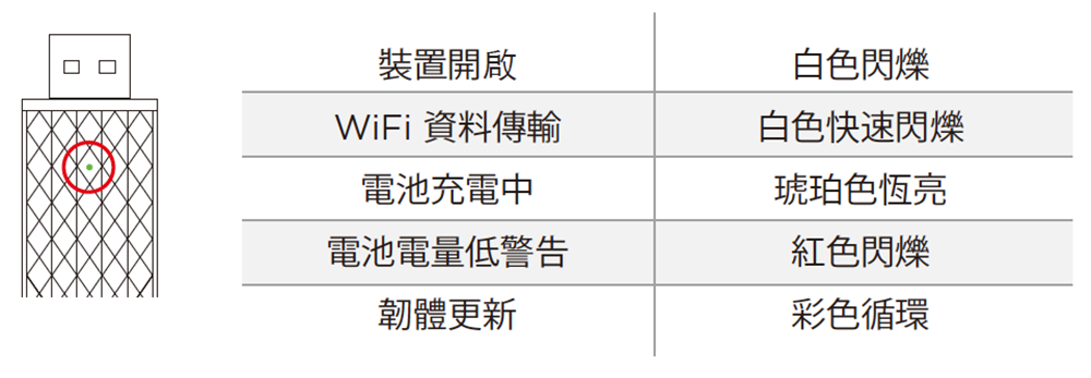 大家會發現機身表面前段有個 LED 指示燈,會閃著不同的顏色。