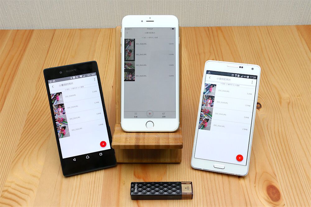 像是出門在外、搭飛機、搭車時,都可以分享喜歡的照片、影片或音樂給家人朋友。SanDisk Connect 無線隨身碟可以同時與多台裝置共享內容,這裡放了兩台 Android 手機和一台 iPhone 6 Plus 做測試都還滿順的。