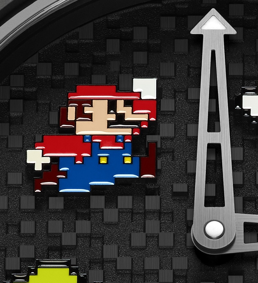 這款超級馬力歐紀念表除了有著 Romain Jerome 品牌一項的高質感與材質,特色當然還是在表面使用著 8 bit 風格,有著馬力歐的招牌跳躍動作、香菇、雲朵等圖樣,下方更有 “SUPER MARIO BROS.” 字樣,讓馬力歐迷迫不及待地想要收藏。