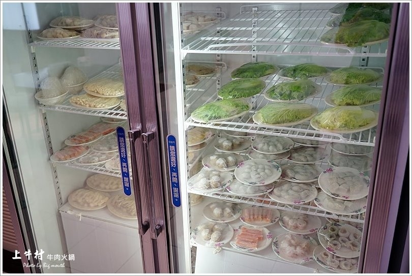 ▼除了溫體牛肉之外,冰箱內還有許多蔬菜、菇類、丸餃類等火鍋料,想吃什麼都可以自取,價位很簡單,通通一盤50元,只有冬粉是10元!