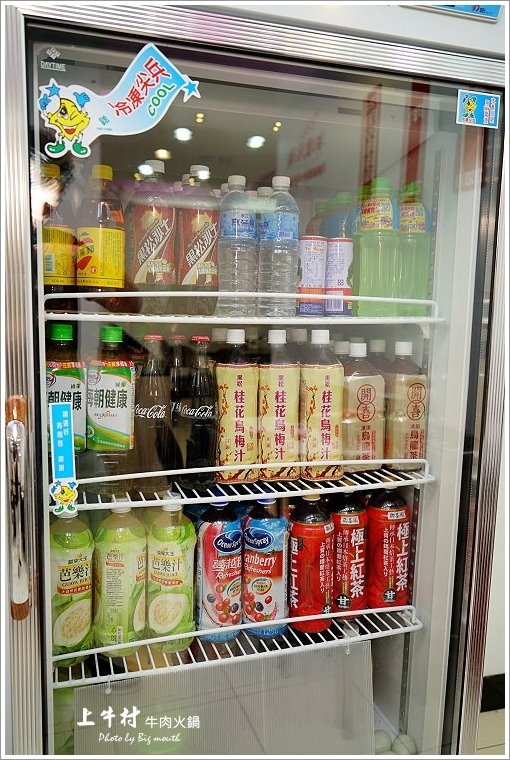 ▼窗明几淨的環境搭配白底紅字的招牌頗為顯眼,「上牛村」販售的就是新鮮直送的現宰溫體牛肉,每天分中午、下午兩次運送! 當天我們特別早 一點到,是營業時間一開始的第一組客人,就為了這一鍋香噴噴的溫體牛肉火鍋啊!果然沒多久人就開始越來越多了,果然早點來是對的!!室內環境明亮乾淨,走 的是簡約路線,分為四人座及圓桌等座位區,人多人少都相當適合唷!另外這裡的冷氣超強,吃火鍋最怕冷氣不強的店家了,所以吃起來超舒服的啦!