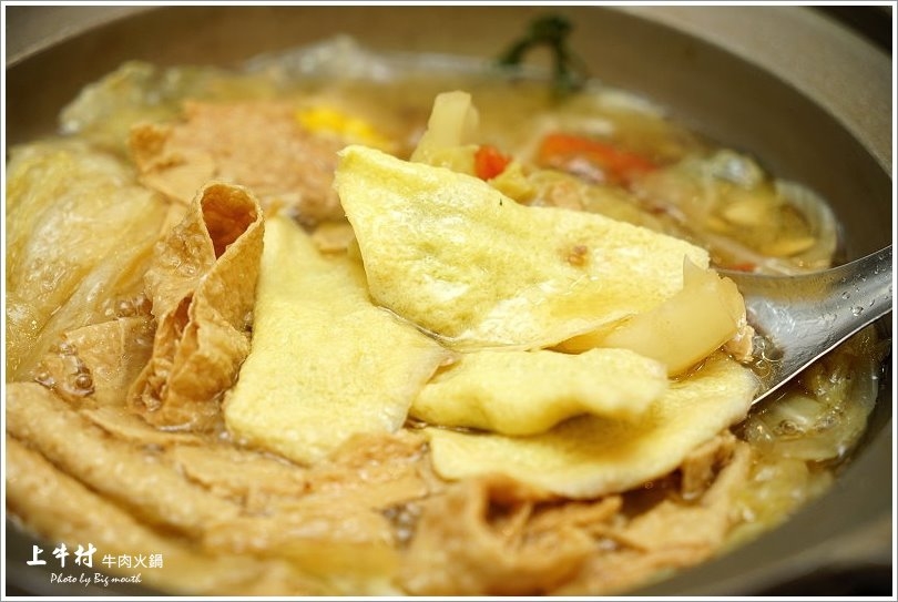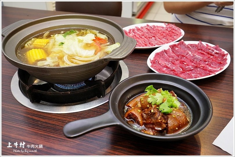 說到溫體牛肉,大家一定會聯想到台南的牛肉湯,但是有比牛肉湯更厲害、更適合聚餐的就是牛肉爐啦!位於台南市中西區民生路二段上的「上牛村牛肉火鍋」,堅持現宰溫體牛每天新鮮直送2次,就為了給客人吃到最新鮮美味的溫體牛,吸引不少饕客慕名而來!話說台南市區賣牛肉爐的還真的不多,更別提北部了,所以來到台南,大口就立馬到「上牛村」報到啦!「上牛村」會依照每日配送的牛肉部位隨機上菜,所以點越多盤越能吃到不同部位的口感,想吃瘦一點或肥一點也能提前跟店家說,店家會盡量依照當天的肉品為客人安排!採用牛骨、牛腩及牛尾搭配蔬菜熬煮的湯頭更是清澈甘甜,涮煮溫體牛肉真是剛剛好!