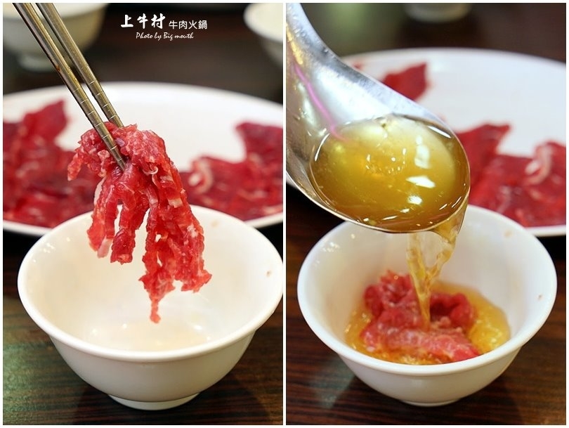 ▼鍋底除了採用牛骨、牛腩、牛腳庫之外,還加入蘿蔔、洋蔥等蔬菜下去熬煮而成,看起來湯頭清澈,喝起來不但有牛肉的清香與蔬菜的香甜;且涮煮過牛肉的湯頭也不會變濁變白,只是味道會變比較重,建議想喝湯的朋友可以涮肉前先品嘗看看,更能喝到湯頭的清香甜美!