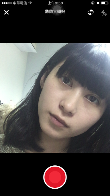 按下拍攝之後就會出現拍影片的畫面,點下紅色開始錄影,最長可以錄七秒!建議大家拍攝前先想一下要什麼表情還有動作,也可以說話!因為音效是可以選擇錄進去的喔!如果沒有預先想好動作和表情會很乾,如果可以簡短的自我介紹或是搭配主題會讓大家對你更有印象!