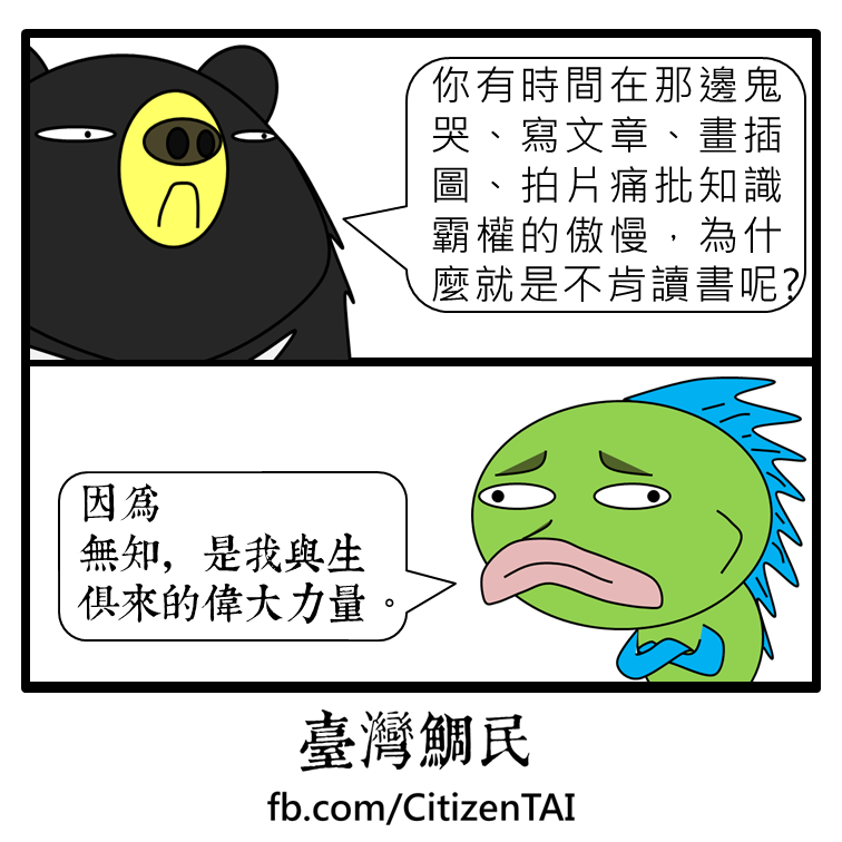 現代知識份子的崩壞,來自於自我虛構的正義感,把無知當良知,一天到晚講一些自己不懂的東西,又愛頂著專家的光環講非專業的事情,這樣一而再、再而三地造謠又崩潰、造謠又崩潰、造謠又崩潰真的是很累人知道嗎?我說真的,多讀點書對自己是好的,沒讀書就閉嘴不要亂開記者會炒人氣,我們也是要上班吃飯睡覺的。