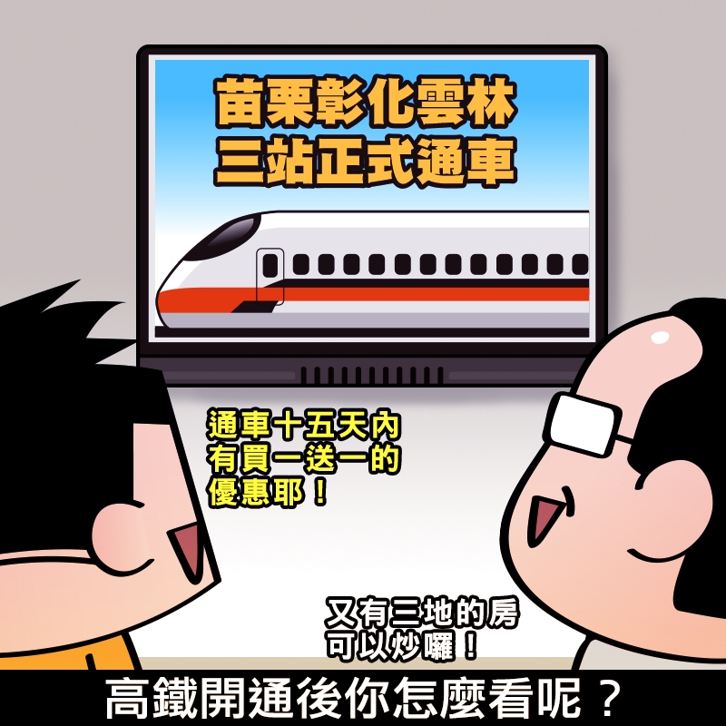 這會不會是內行看門道、外行看熱鬧呢?我們會覺得到其他這幾個地方又更快了,好像還滿方便的!但其實還沒開通前,每天開車接小孩聽廣播時,都會聽到建商的廣告,說苗栗到竹科只要幾分鐘之類的,看來建商們也非常積極啊!不知道那邊的房價是不是又快被炒起來了呢?(看竹北和桃園青埔就很能感受啊~)