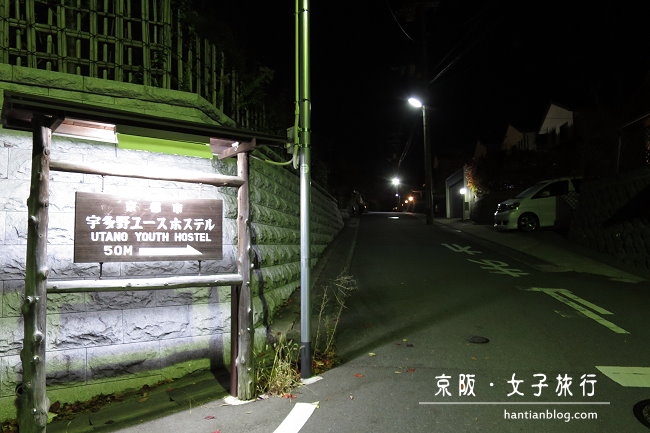 一下公車回頭看就會看到「宇多野ユースホステル」的指標