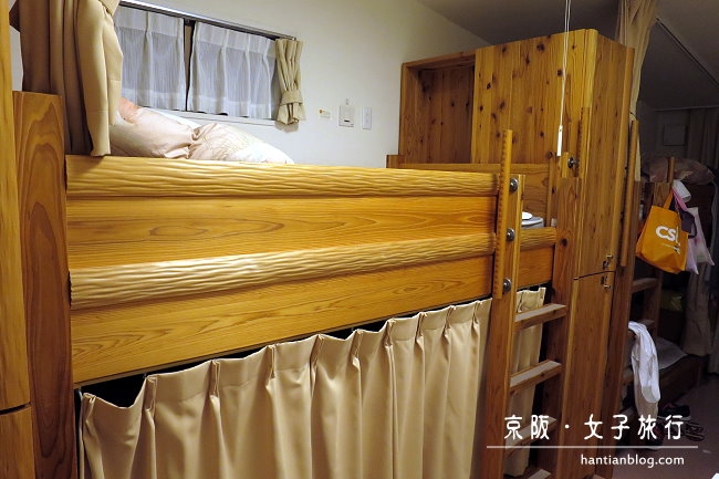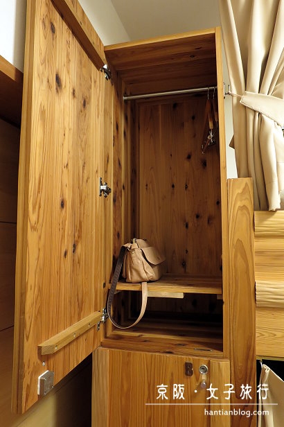 宇多野青年旅館很不錯的是,房間內床旁邊有自己的櫃子可以鎖貴重物品