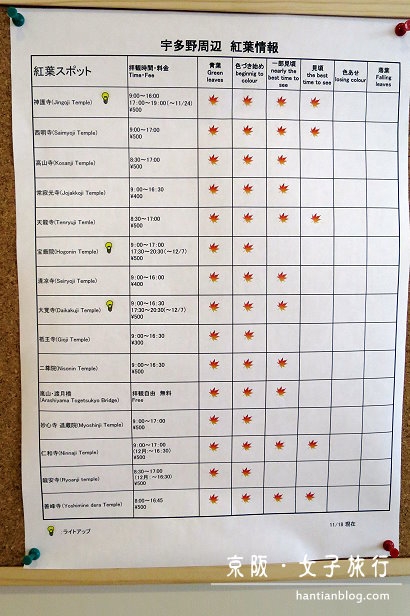 旅館的公布欄很貼心的為大家公告紅葉情報