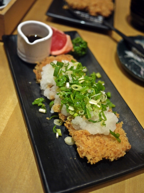 看來偏瘦的里肌肉吃起來卻意外的軟嫩還帶點微肉汁,麵衣雖然沒有多讓人驚豔的酥也是恰如其份,加上中間那小沱蘿蔔泥和像是偏甜的和風醬汁一起入口直覺「它」不止70元。