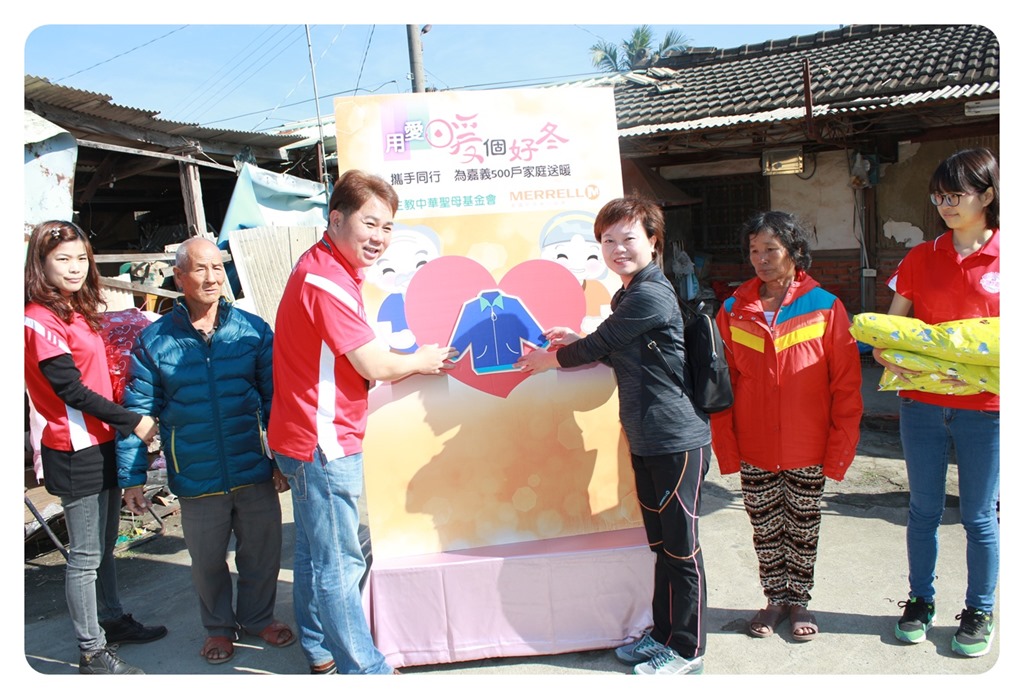 連續幾年捐贈運動鞋款,今年再擴大捐衣響應中華聖母基金會的冬令保暖衣物愛心物資募集計劃。MERRELL在得知2016農曆新年,中華聖母基金會將啟動募集計畫,為全國老人比例最高、家戶年收入全國倒數、同時於寒冬屢創低溫的嘉義地區,500戶需要支持的家庭預備羽絨外套與發熱衣,以及各項民生必需物資品,MERRELL率先響應參與募資計劃,拋磚引玉捐贈超過百件保暖外套予中華聖母基金會,讓需要被幫助的人在寒冬中更能感受溫暖,捐贈服飾商品包含羊毛外套、刷毛外套、擋風外套以及科技羽絨保暖外套,市價總值超過50萬。
