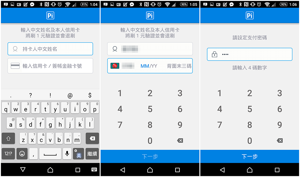 接著把個人使用資料和綁訂的中信卡輸入認證,並設定到時要結帳用的四位數支付密碼,就可以建立完成。