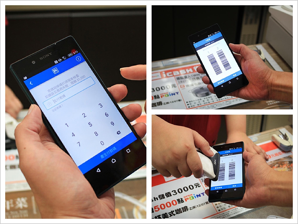 輸入支付密碼,接著出示螢幕上的兩條一維條碼讓店員掃描,就能輕鬆快速結帳囉!