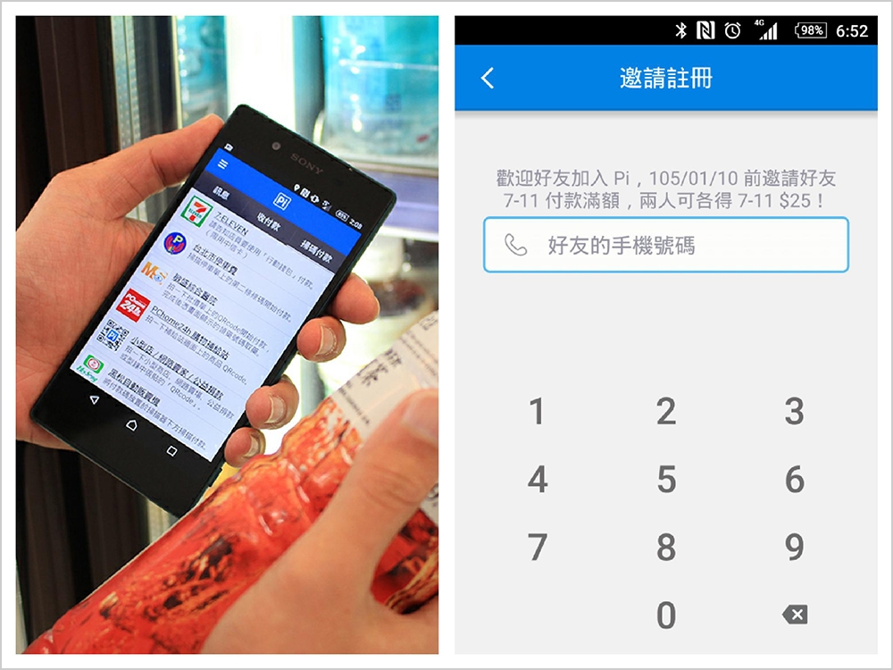 一起告訴朋友們這個好功能吧!最後這裡告訴大家一個好康的,在 105/01/10 前透過「Pi 行動錢包」訊息功能裡面的「邀請註冊」,推薦朋友們來註冊會員,只要受邀新註冊會員在 7-11 掃碼付款刷中信卡單筆滿 50 元,新舊會員都可以拿到 25 元的 7-11 現金抵用券唷!(等於是你和你朋友都各再賺了一罐飲料這樣~)