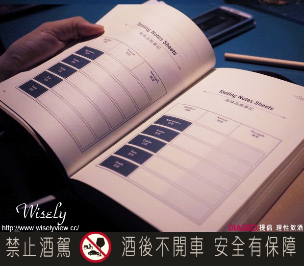 受邀參加全感藝境的每個VIP,都可以得到一本印有自己親選兩個英文字母縮寫的風味品鑑手扎,內容除了有蘇格登威士忌產區相關內容介紹之外,品酩者也可以在內頁裡把自己的品酩心得記錄下來。