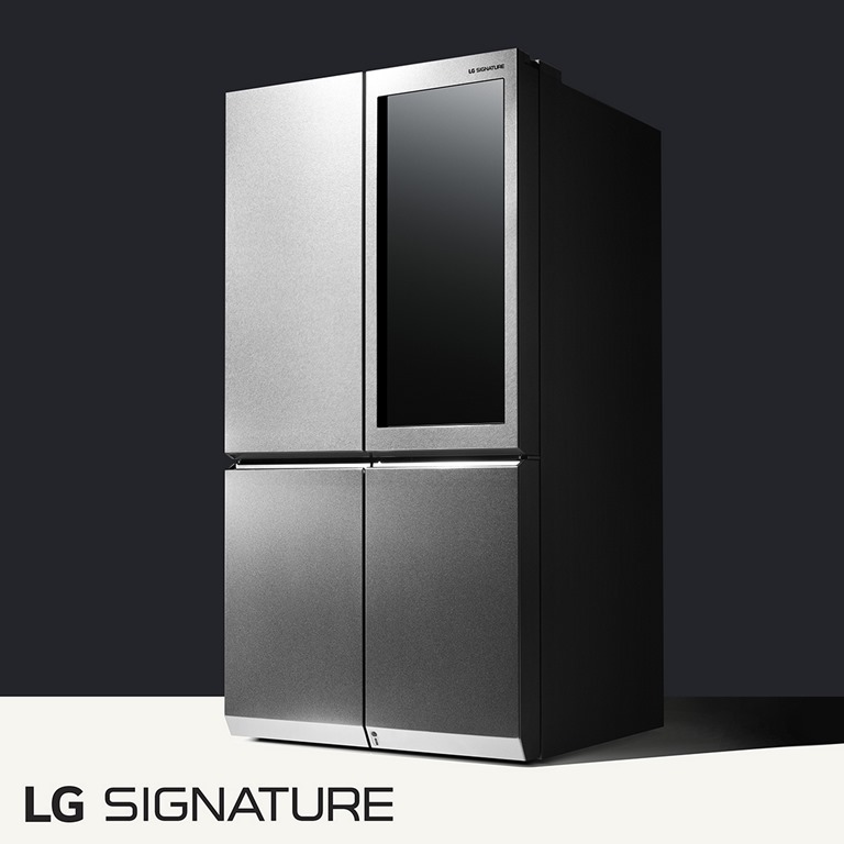 LG SIGNATURE 冰箱呈現將食材新鮮度的本質具體化,加入 Knock-on Door-in-Door 功能,不透明的門中門隔層只要輕輕一敲,就能變為透明。透明的表面讓消費者能夠一窺冰箱內部,而不需要開啟冰箱,藉由限制冷流流失來達到節省能源的效果。