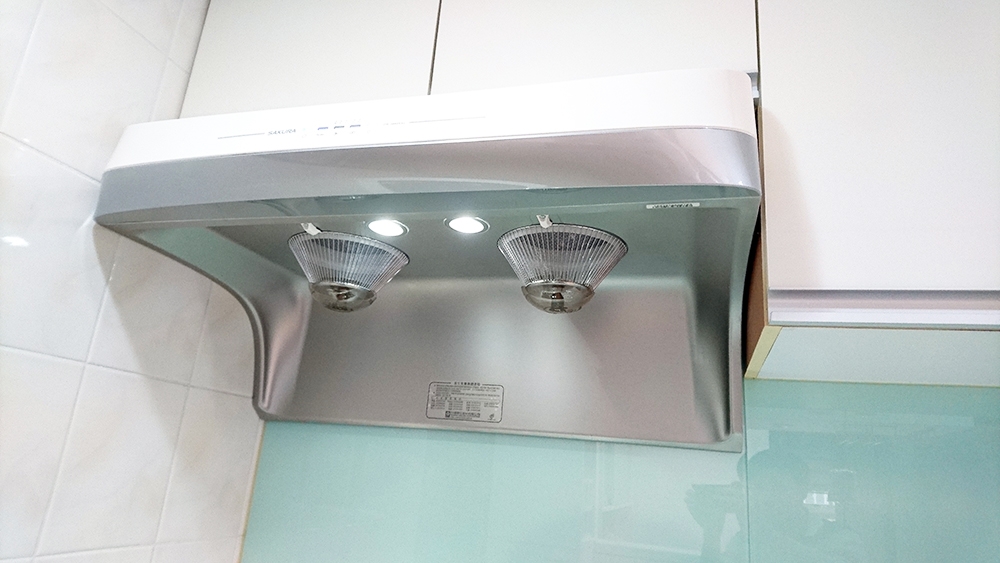 跟以前租屋的傳統馬達抽油煙機比起來,櫻花這款除油煙機簡直是無聲啊!DR3880 漂亮的外型和強勁的除油煙功能,讓家裡的廚房也因為這樣加分很多,其實在搭配選用除油煙機時,到櫻花的門市現場看看,順便吸取一些經驗真的還滿重要的,因為有滿多細節的,像是家裡窗戶和門的位置、瓦斯爐的尺寸、除油煙機的尺寸…等,都是採購時必須參考的指標,瓦斯爐太大結果除油煙機太小也不行,完整的做好一個廚房空間的對流循環,可以有效改善油煙問題,可以多請教這些專業人員唷!