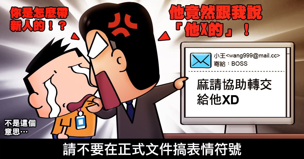 雖然表情符號真的很好用,但是在職場等正式對外及對上的郵件發送上,盡量避免使用,以免淪為給對方輕蔑或不專業的印象囉!