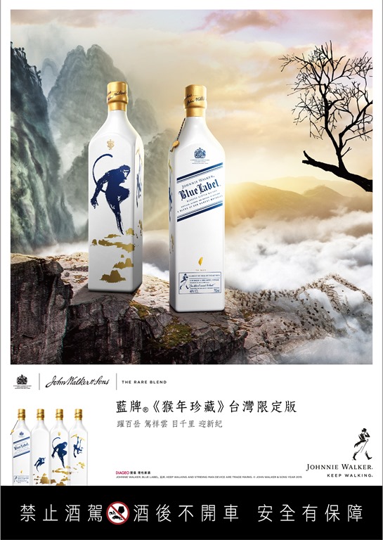歡慶賀歲迎猴年,威士忌領導品牌JOHNNIE WALKER®挾帶恢弘氣勢,磅礡推出年度生肖限定精裝,偕同LIULI LIVING by琉璃工房替JOHNNIE WALKER ®藍牌®威士忌《猴年珍藏》台灣限定版頂級酒液再造琉璃典藏。將蘇格蘭稀世醇釀注入東方藝術精粹,在新春佳節向至親好友獻上最真摯的醇香感謝。